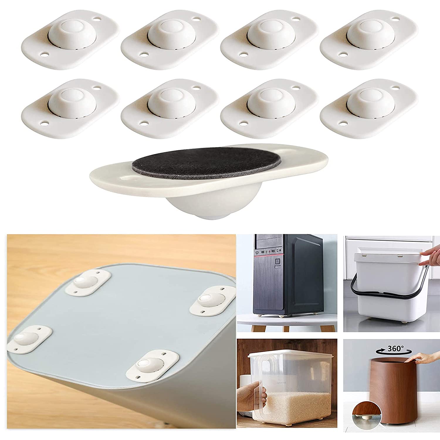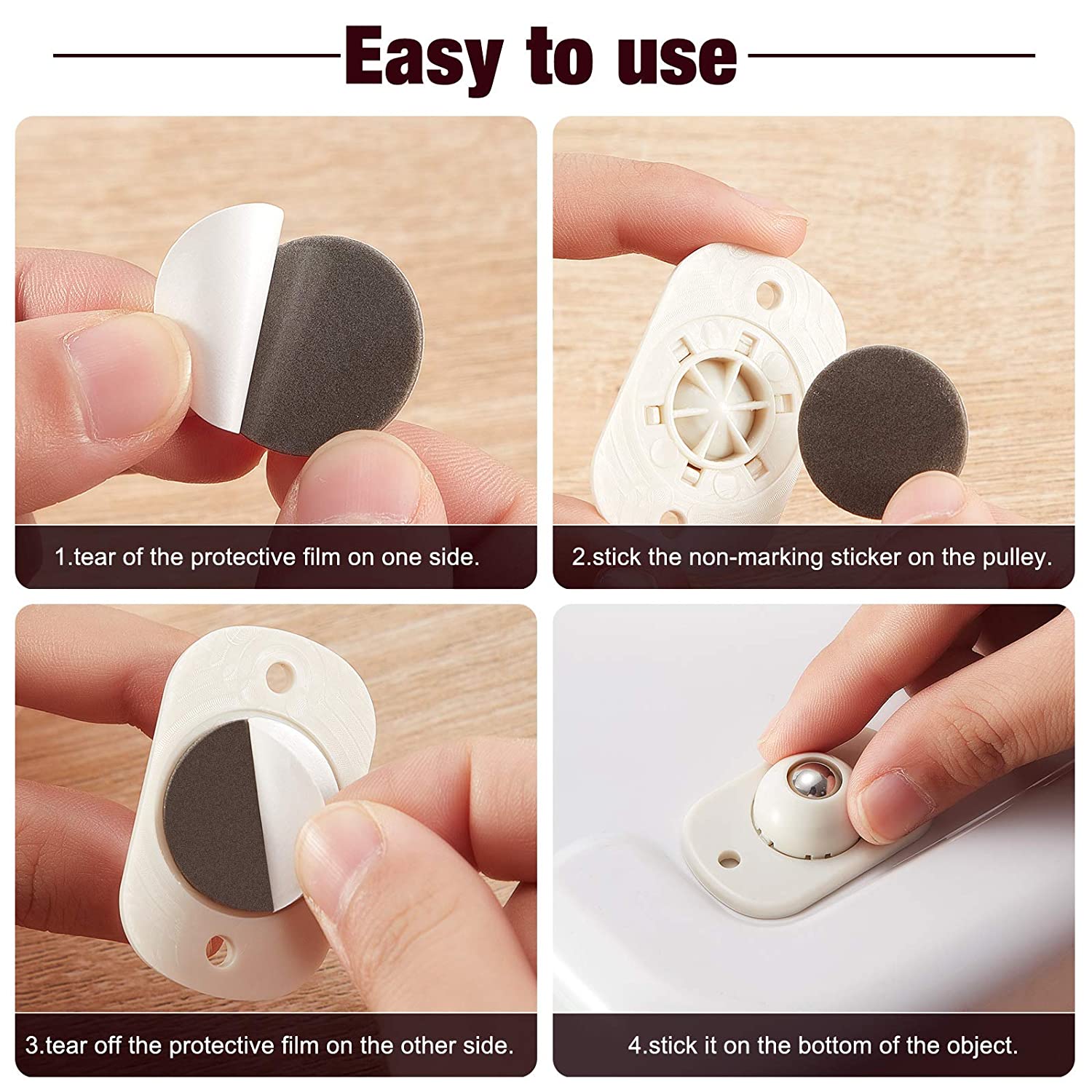 Material:The adhesive casters are designed in the shape of a small steel ball, and they are made of ABS material and stainless steel, which is strong and wear-resistant.